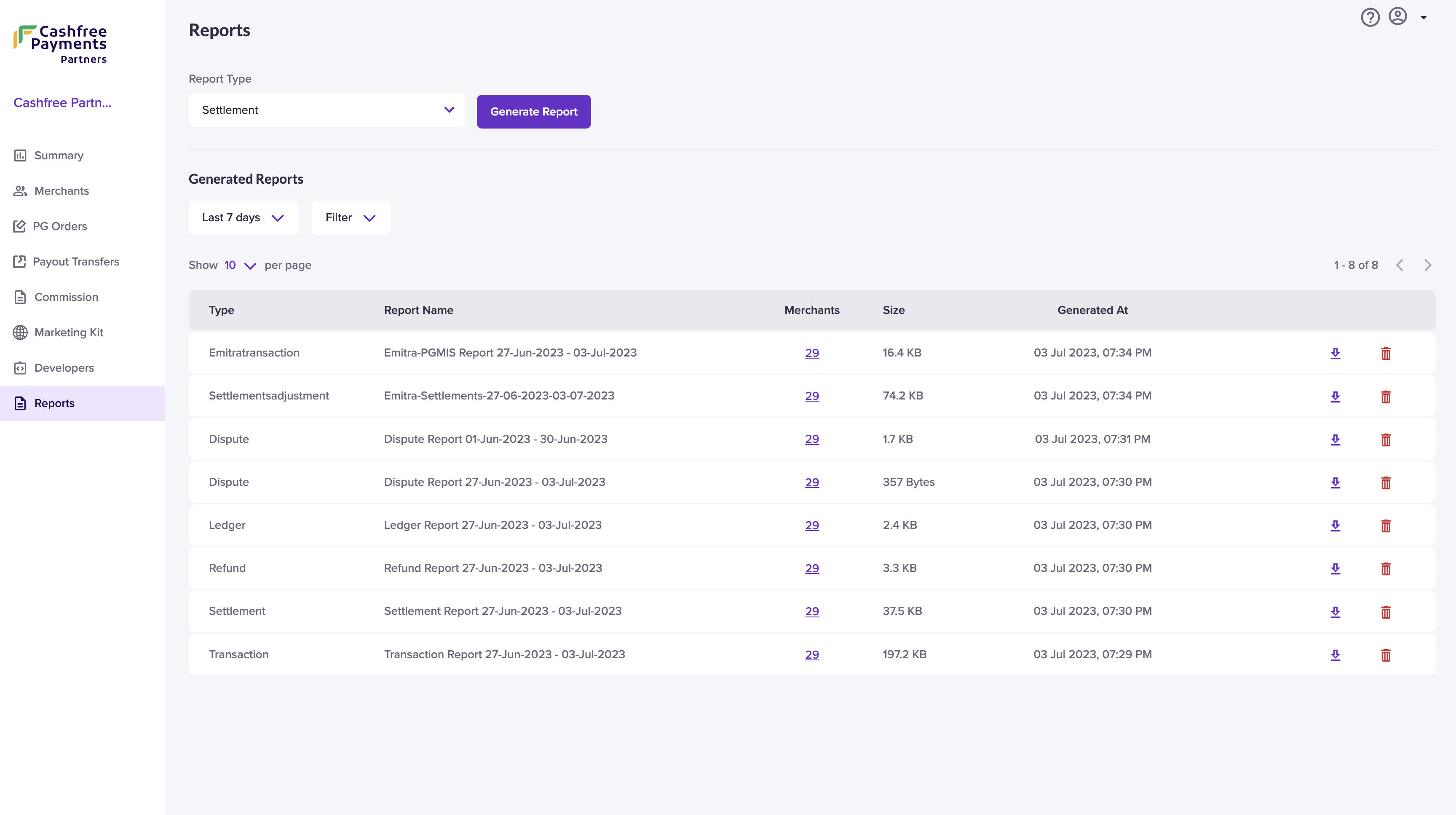 - Go to Embedded Payment Dashboard > Reports. Choose the required report from the Report Type drop-down and click Generate Report. You can also apply filter and view reports as per your requirement.