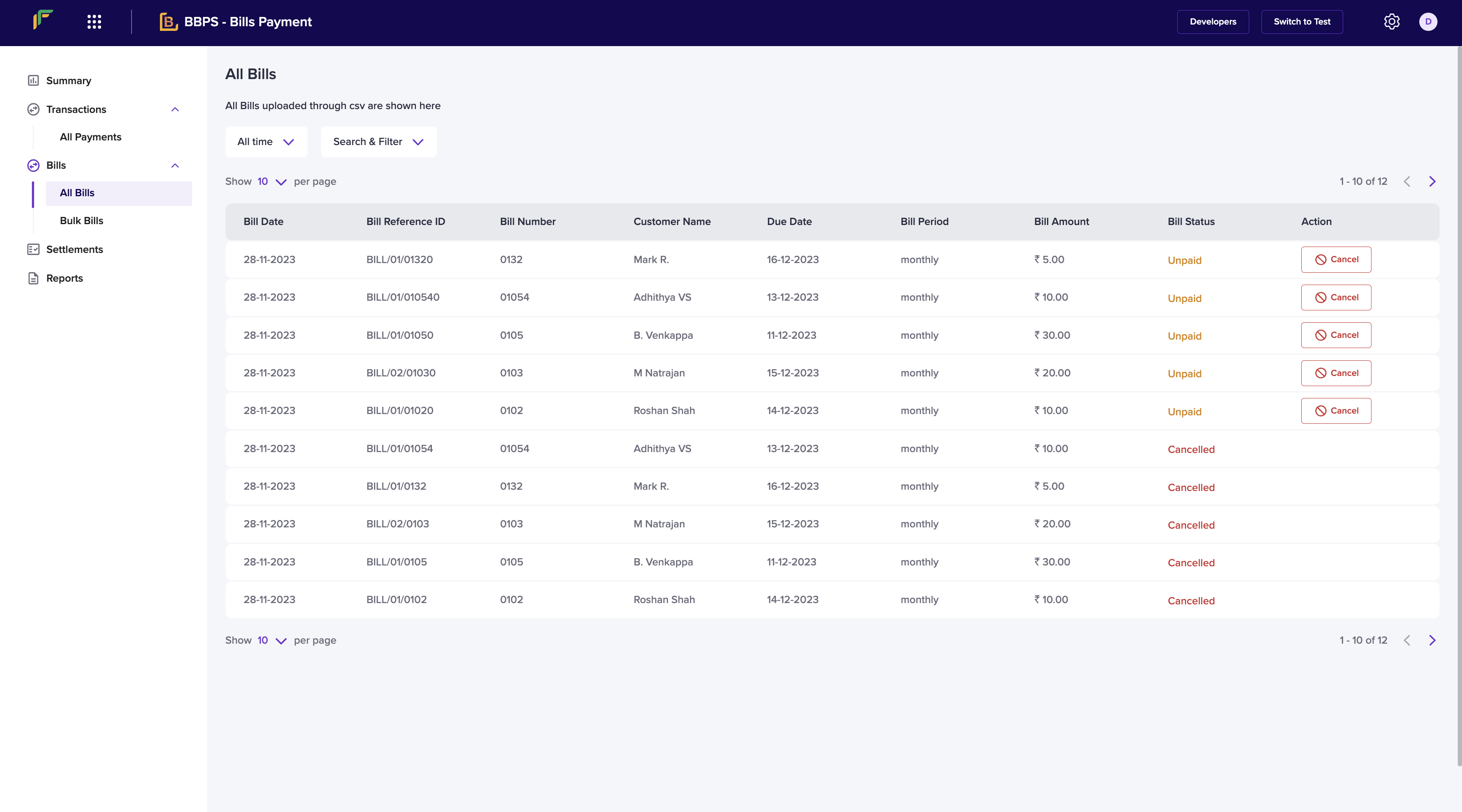 - Bill Reference ID - Unique identifier of the bill generated by the merchant/biller.