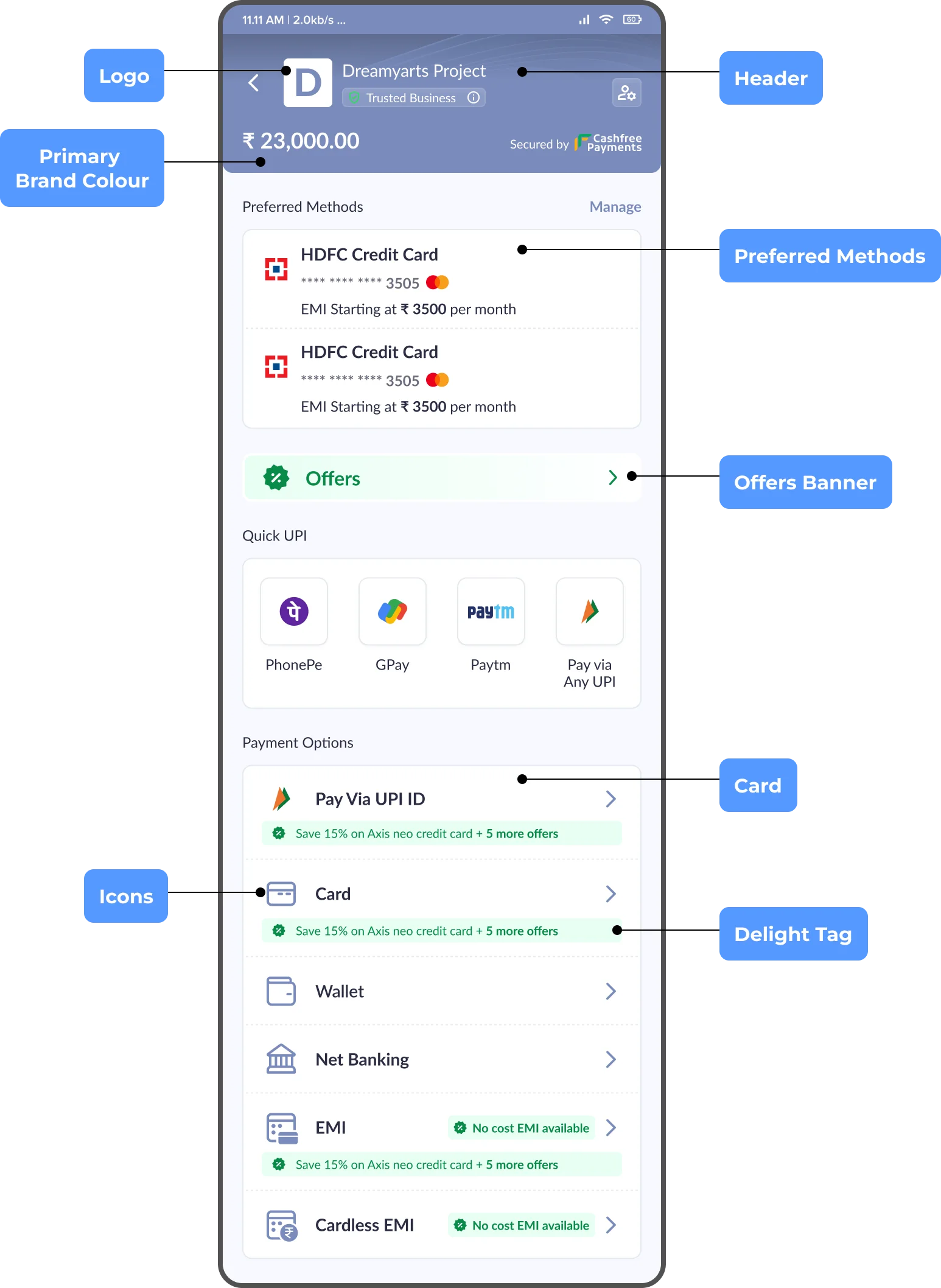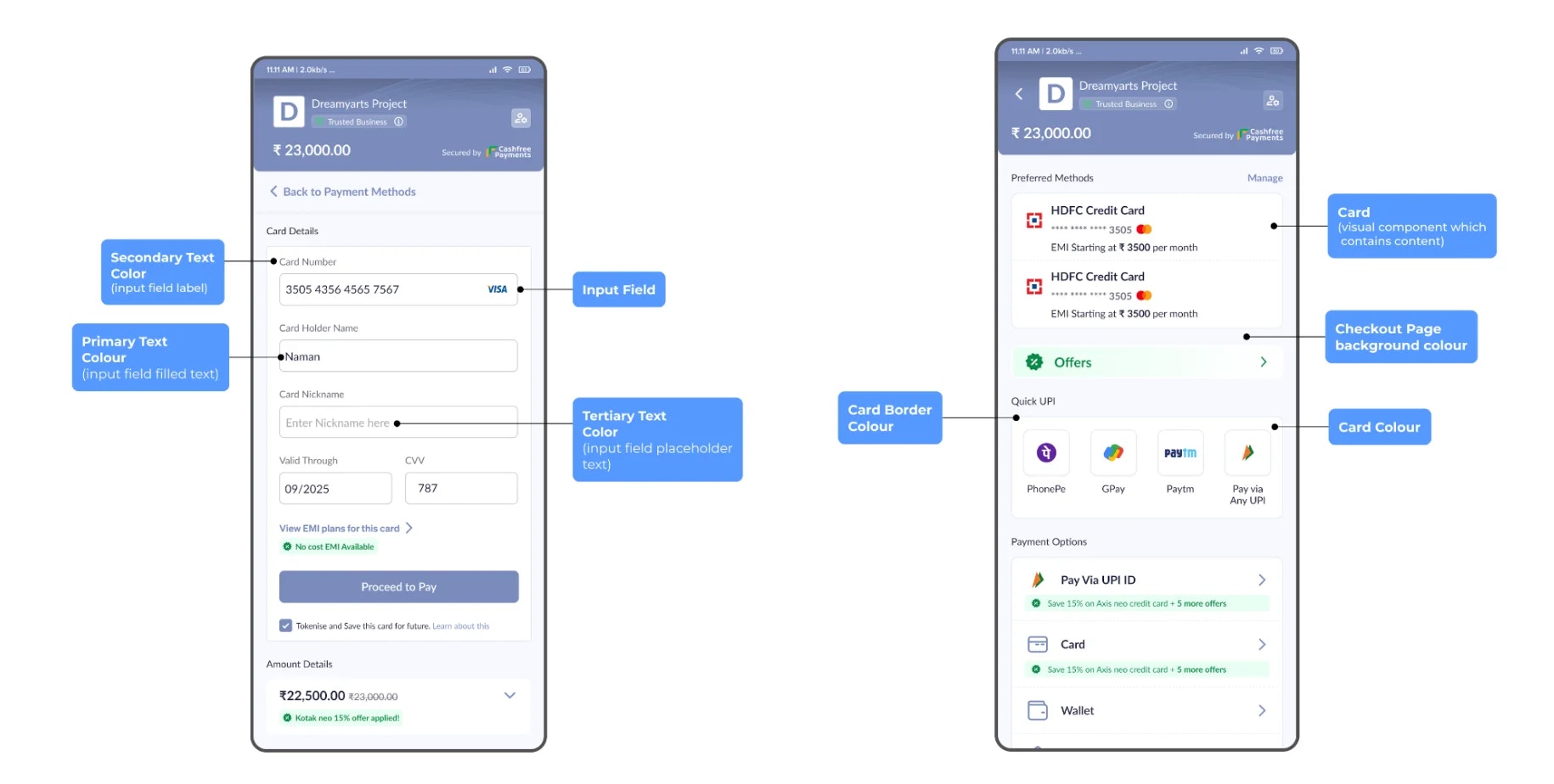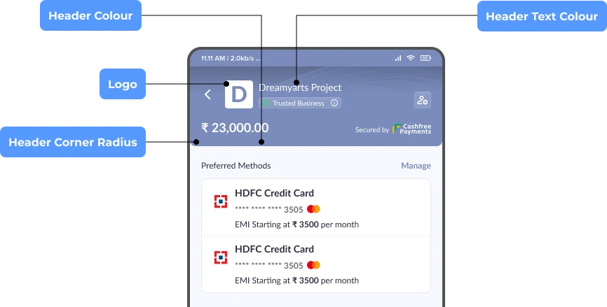 The Canvas branding dashboard aims to enable you to customise every visual detail of all the components present in the checkout page to make it look like a true extension of your own platform. This helps in instilling trust in customers regarding the authenticity of the checkout page and makes the visual transition from your platform to checkout much smoother.How to customise the checkout page