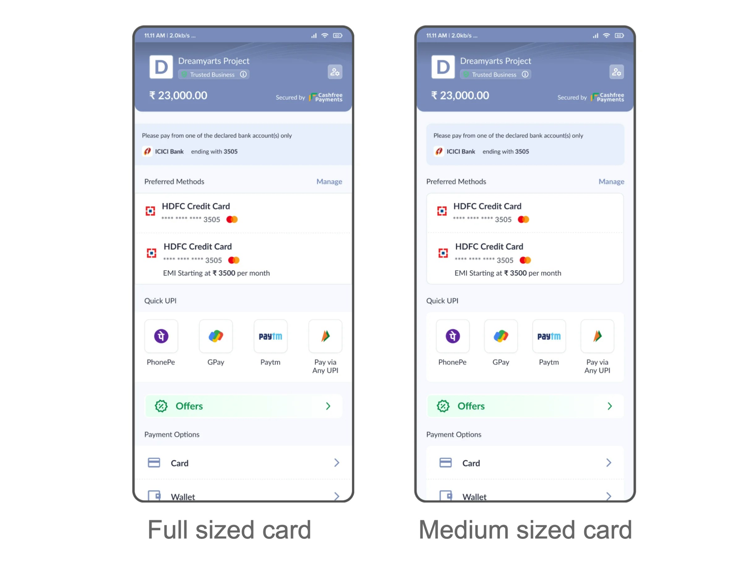- Card style - full or medium sized