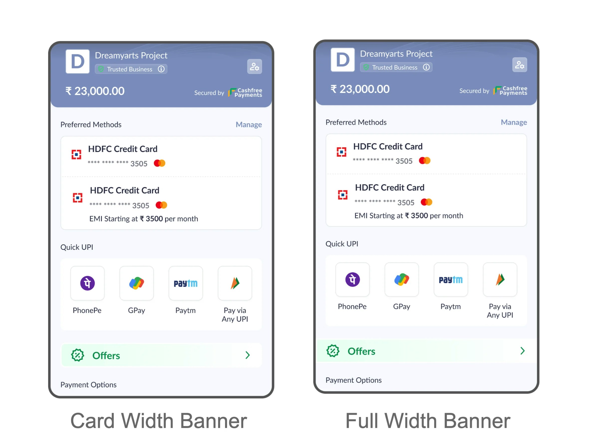 You can configure the following options:- Offer banner style - card width or full width