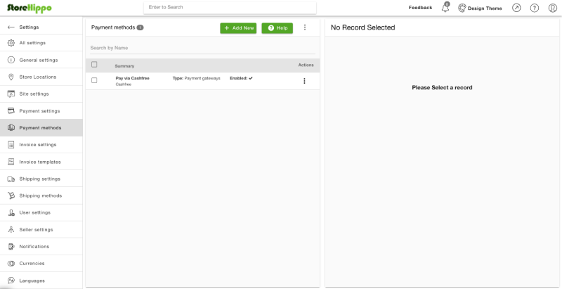 In the Payment methods screen, click Add New to add a new payment gateway.