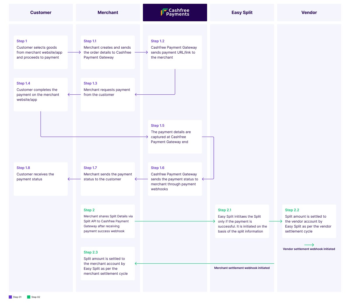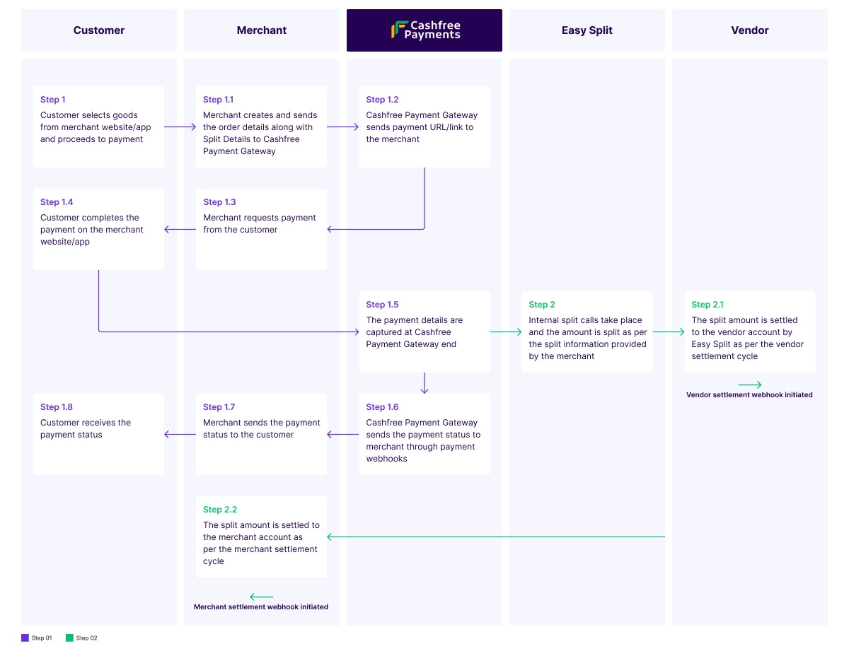 The flow diagram below shows how a split happens if the payment is successful. It is a two-step process.