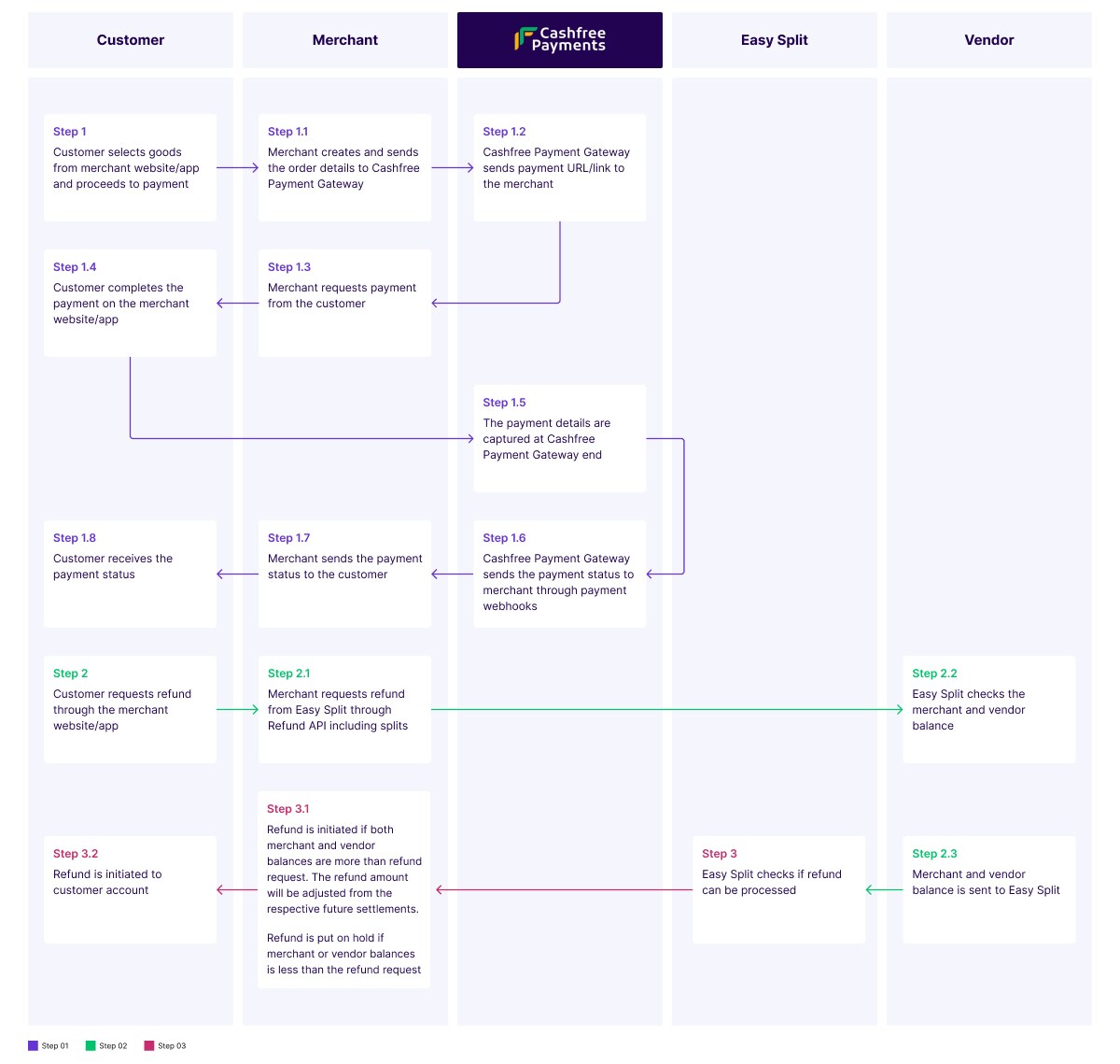 - Step 2.2: Easy Split checks the merchant and the vendor balances to process the refund.