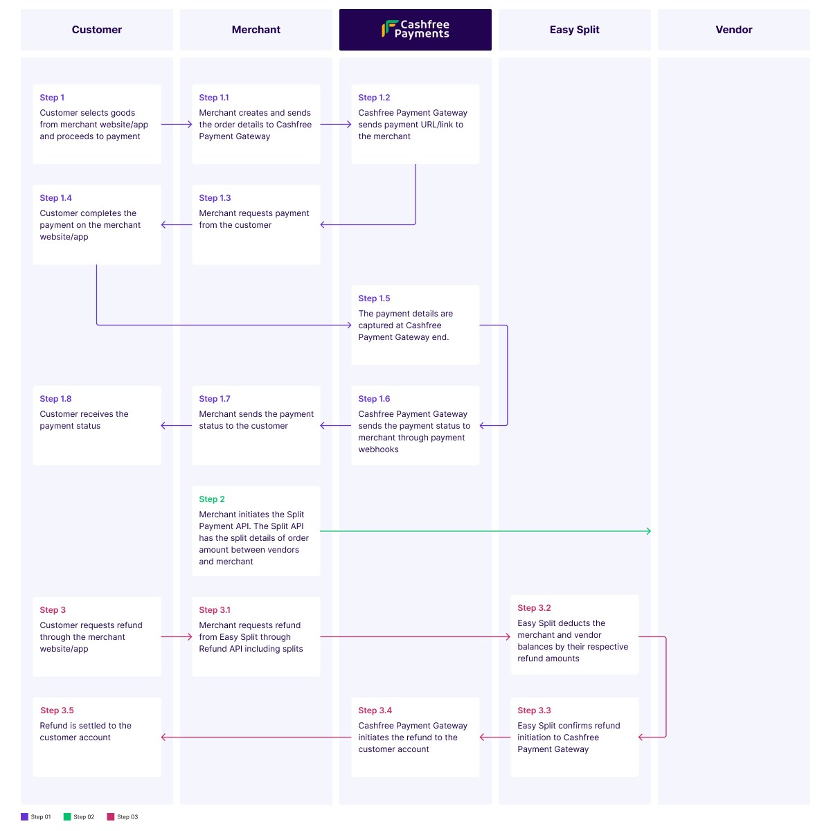 - Step 1: The customer visits the merchant website or the application and adds goods from different vendors to the shopping cart. The customer proceeds to complete the payment.