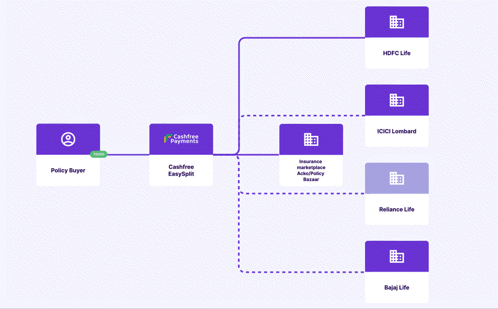 Marketplaces where 100% order amount is settled to AMC or Insurerโs account. The settlement will be customised and completed on the same day, with additional AMC & NBFC level reconciliation. Easy split also facilitates instant and on-demand settlements