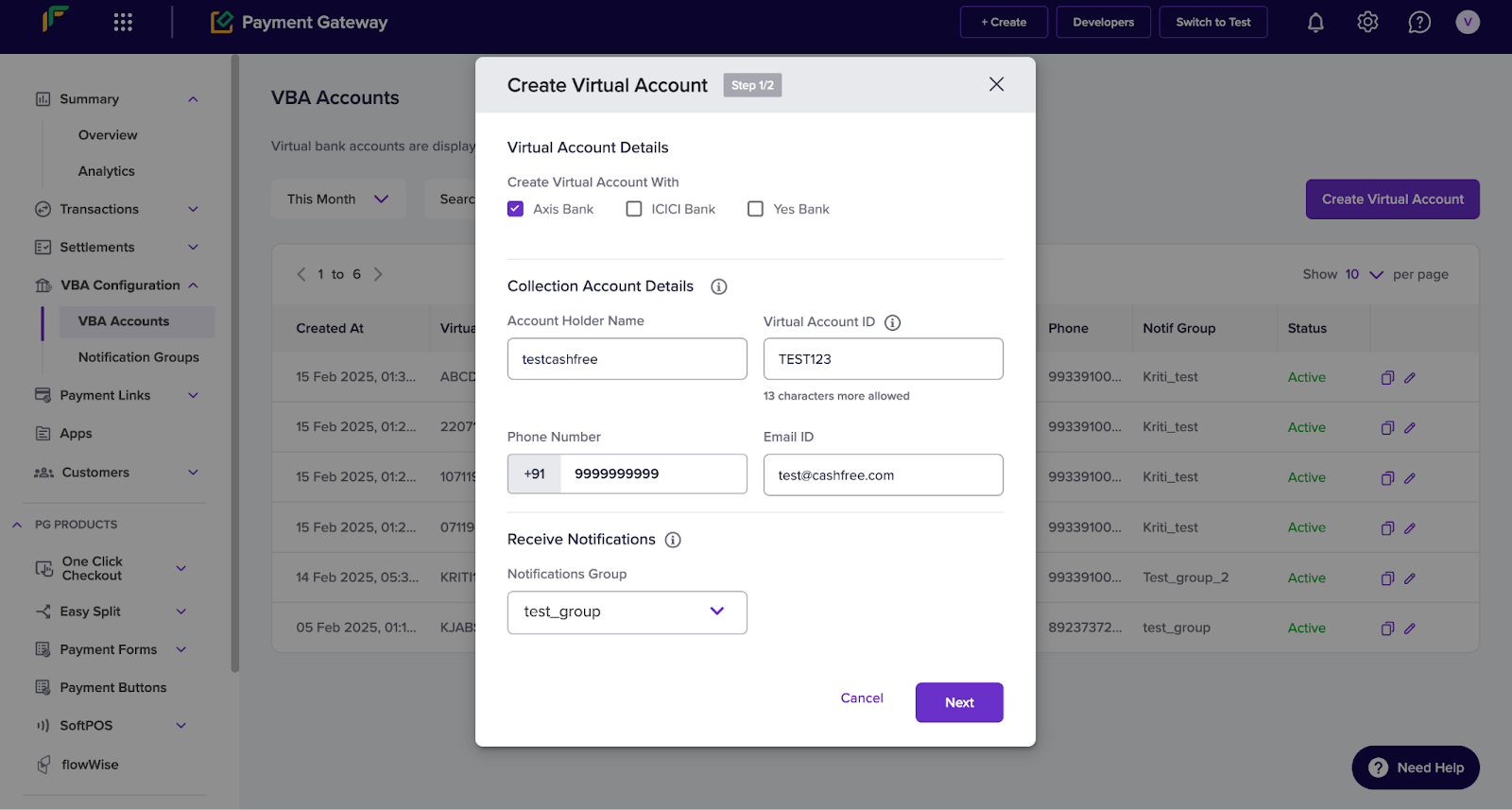 - Click Create Virtual Account.